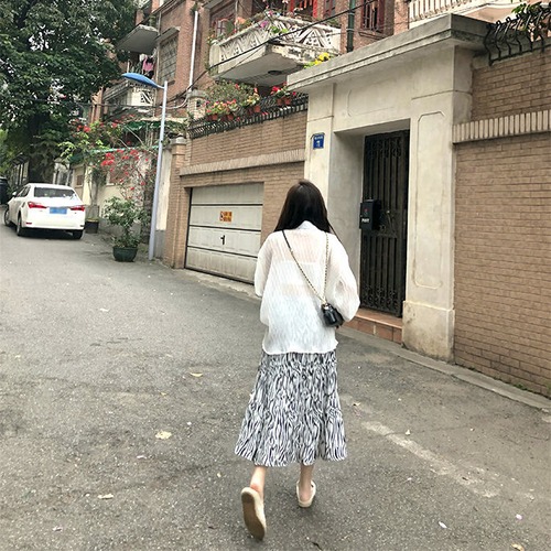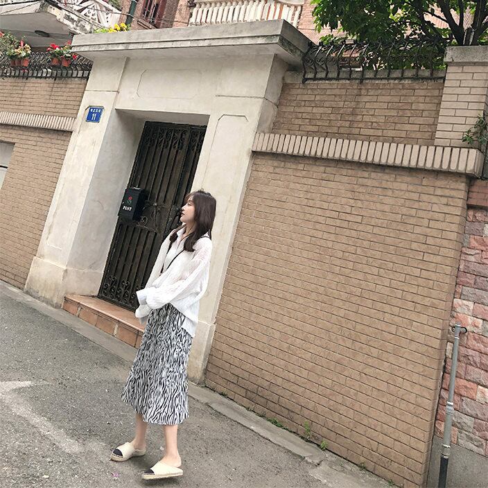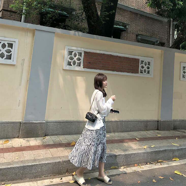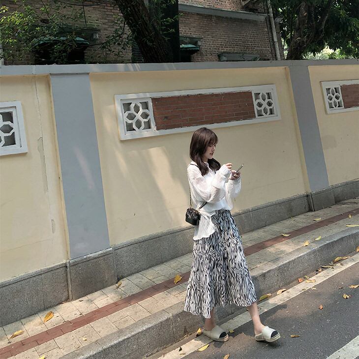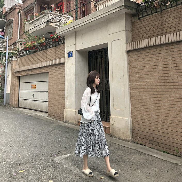 スカート シフォン ミモレ丈 ゼブラ柄 Aライン ロングスカート ボトムス レディース
