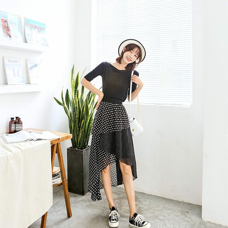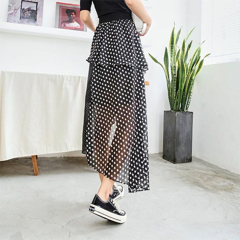 スカート シフォン 水玉 チュールスカート フィッシュテール ボトムス Aライン ドット レディース